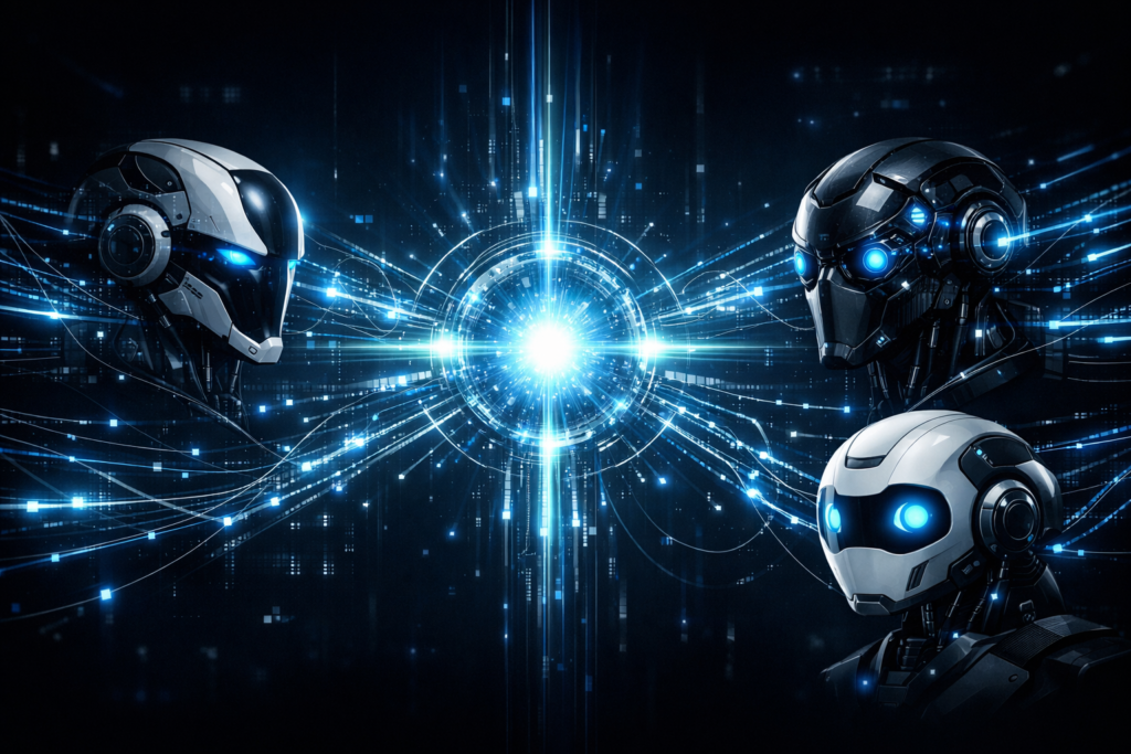 Diferente de um script de automação comum, os Sistemas Multiagentes operam sob uma lógica de emergência de comportamento. Isso significa que cada agente possui um objetivo individual, mas o sistema como um todo trabalha para um objetivo comum. Em 2026, utilizamos protocolos de comunicação avançados, como o Agent Protocol, que permite que uma IA desenvolvida pela OpenAI colabore perfeitamente com uma IA da Anthropic ou um modelo local Llama 4.